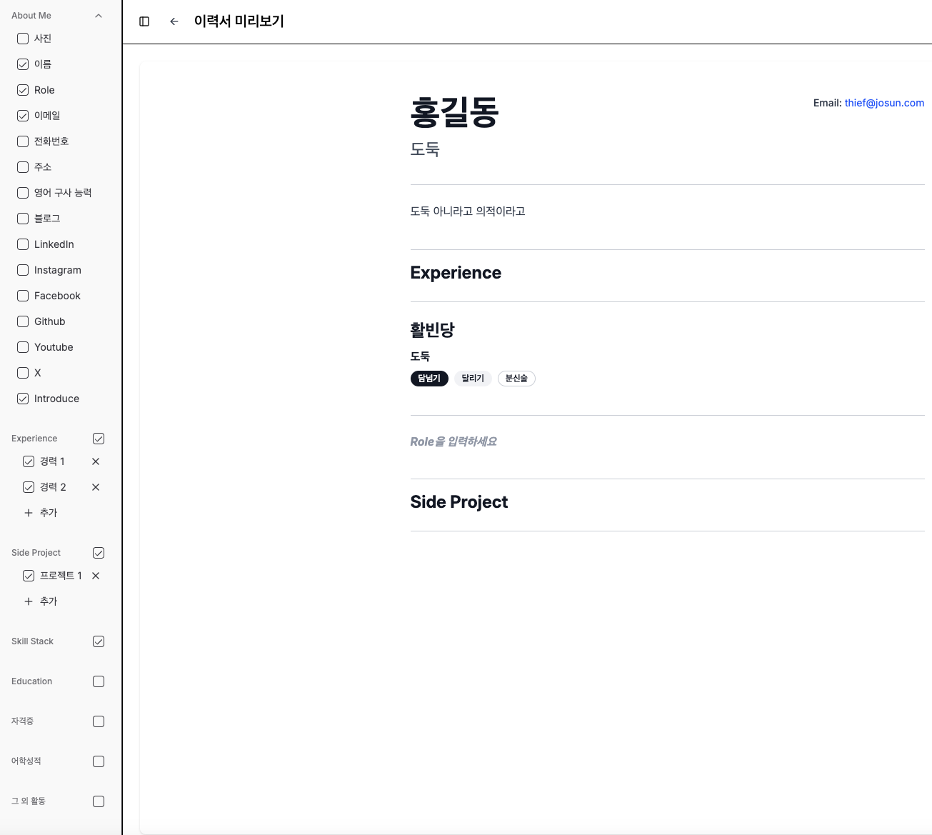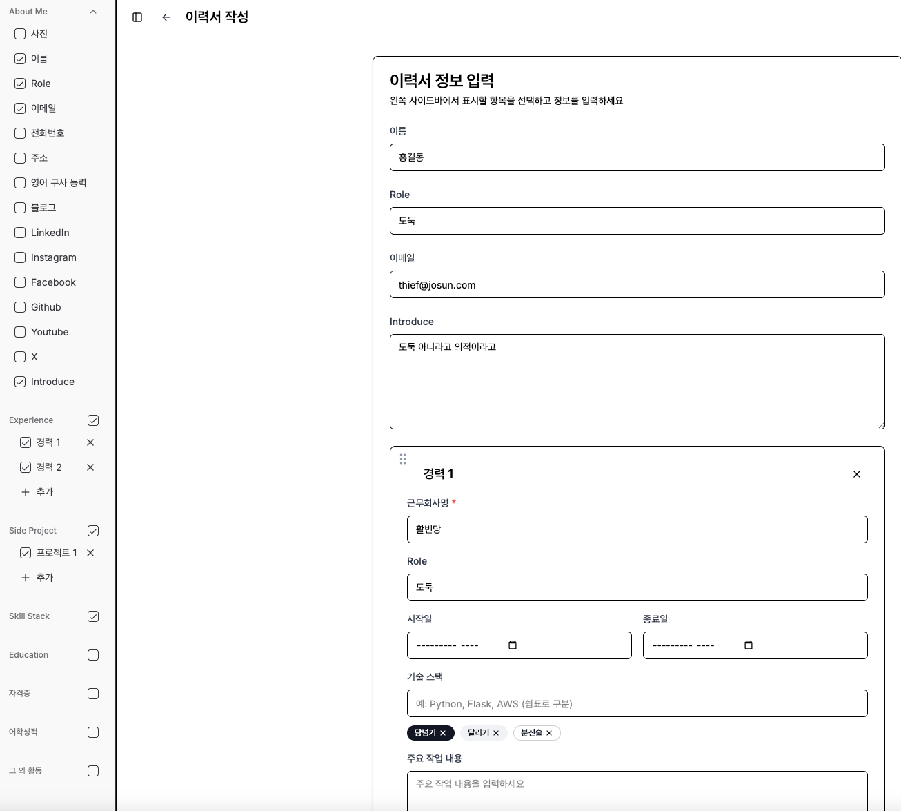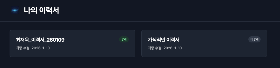 멀티 이력서 관리: 한 사람당 여러 개의 이력서를 생성하고 관리할 수 있습니다.