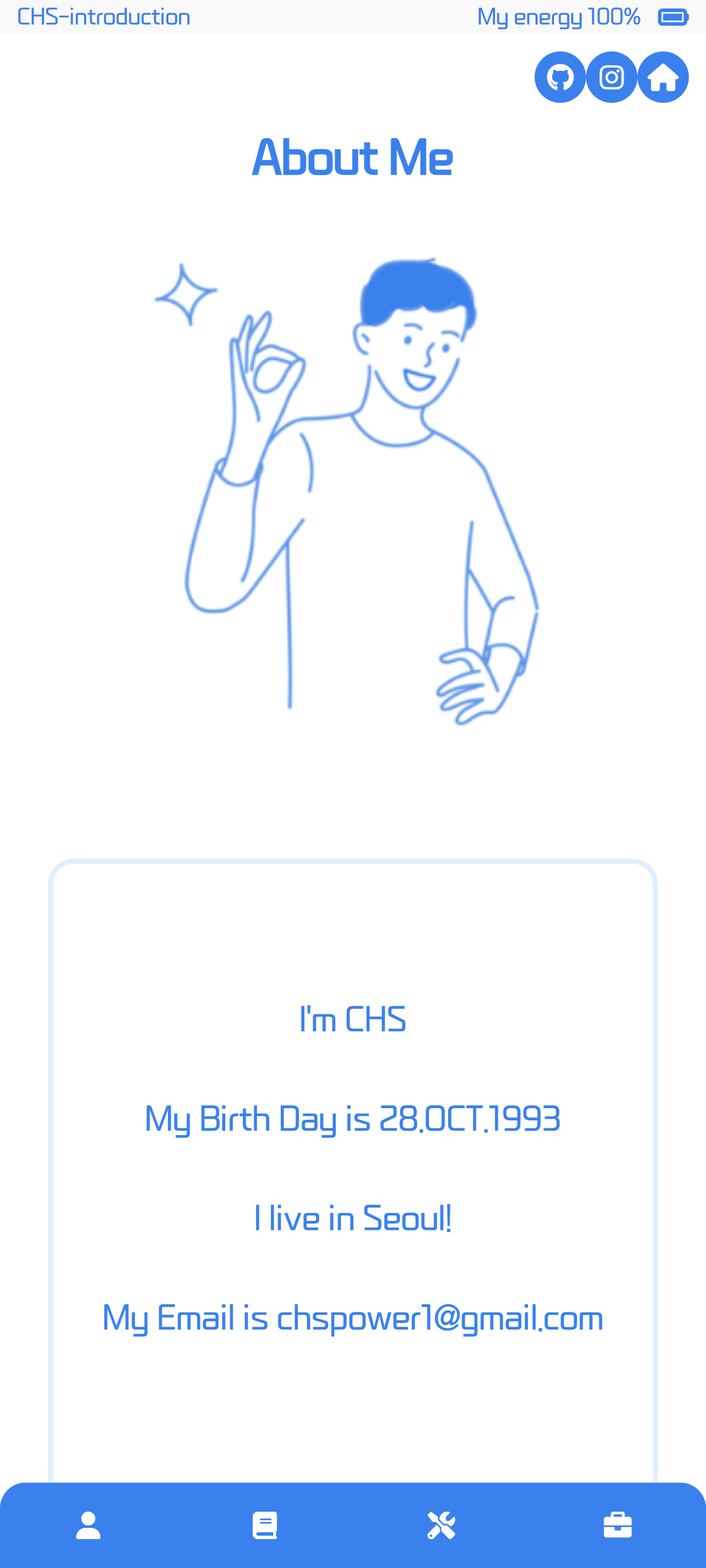 우선 저는 카카오톡 디자인을 따라하는 것이 아닌 제가 디자인한 자기소개페이지로 응용해서 만들어 보았습니다.